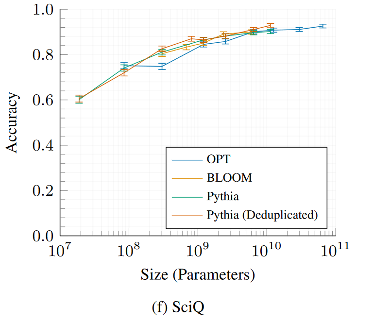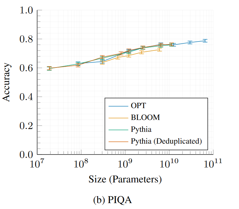 Pythia and Pythia-deduped models compared with OPT and BLOOM.